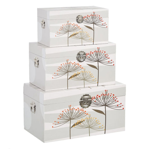 Trunk Set 65 x 38 x 35 cm Flowers DMF Canvas (3 Pieces)