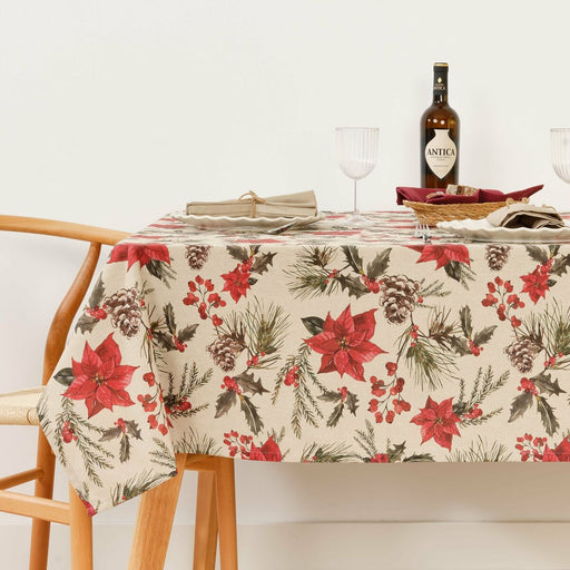 Mantel resinado antimanchas Muaré Christmas Flowers 200 x 140 cm